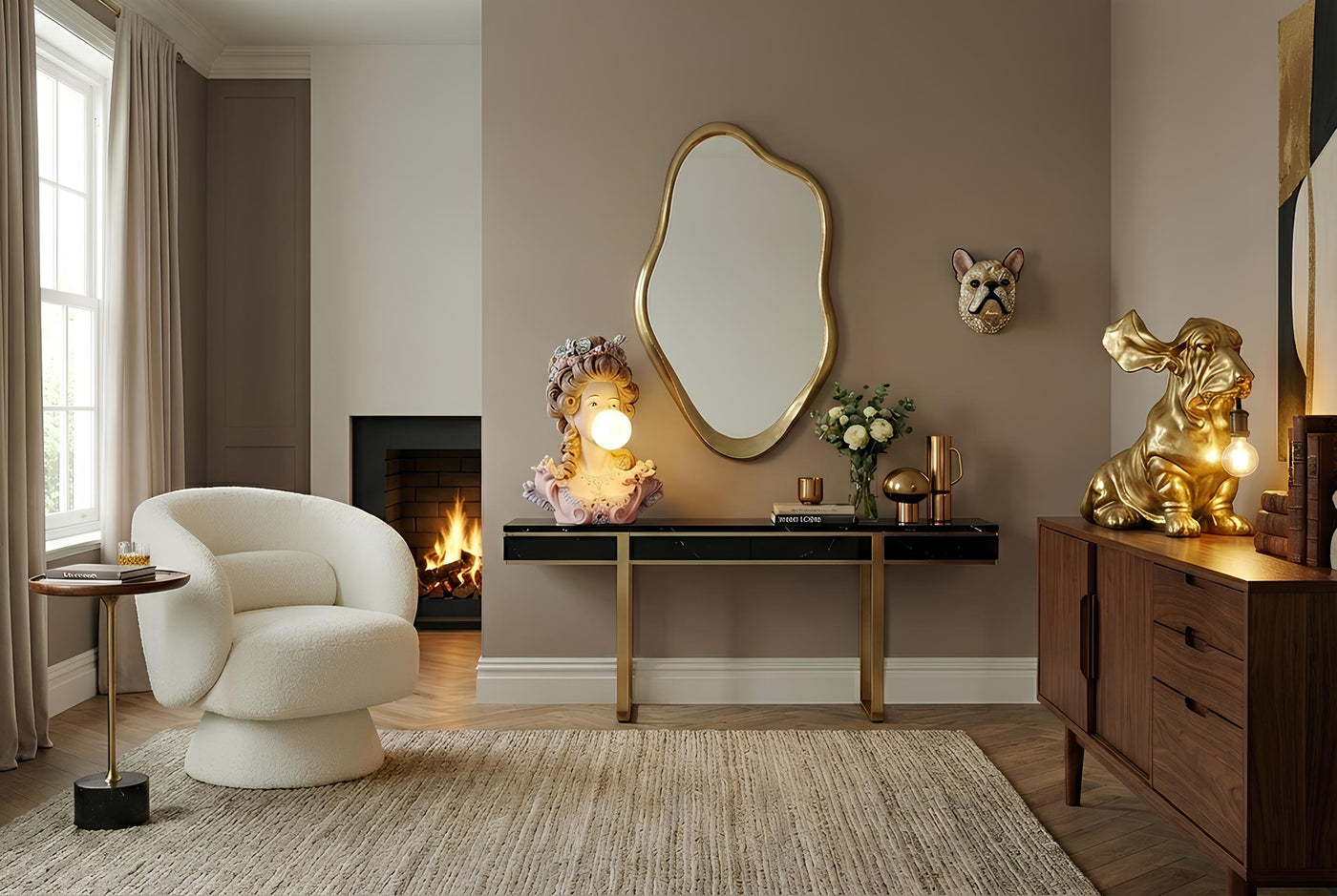 This statement piece combines quirky charm with practical functionality for any modern lounge or bar area.