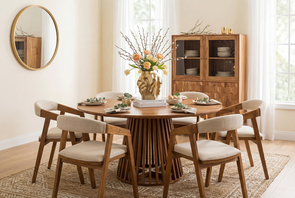 The MAISON JADE dining table combines natural beauty and durable craftsmanship to create a stylish, welcoming centerpiece for any home.