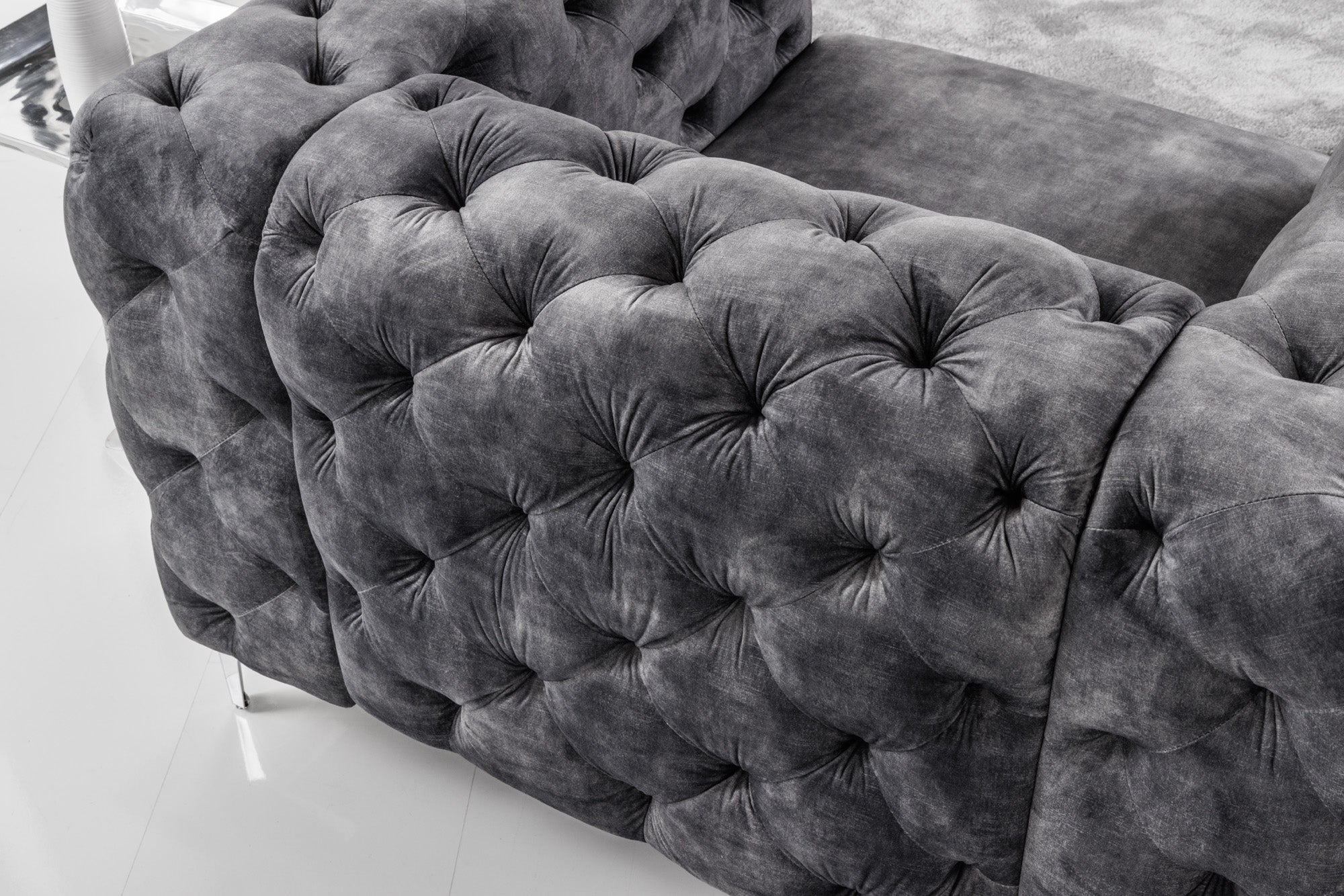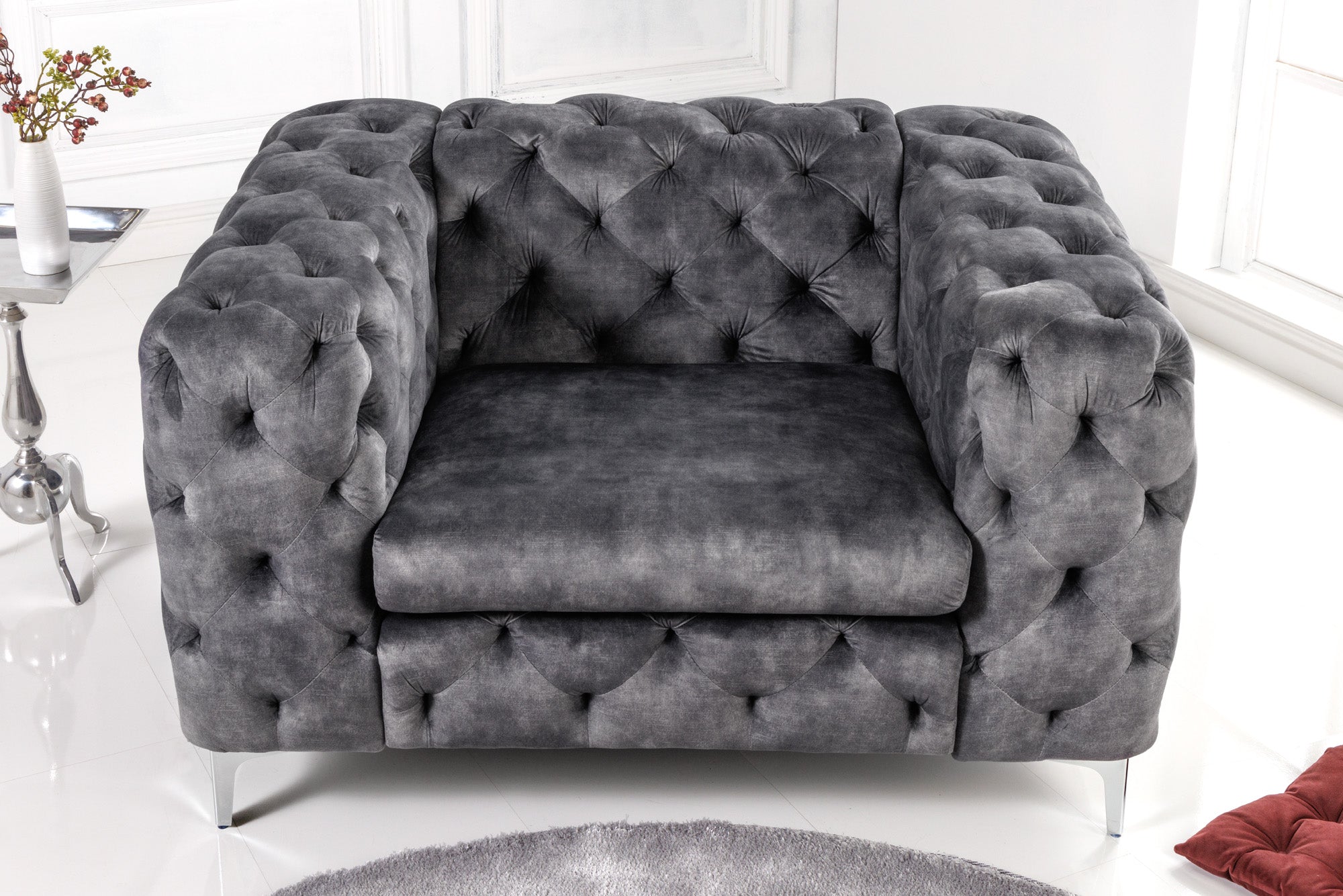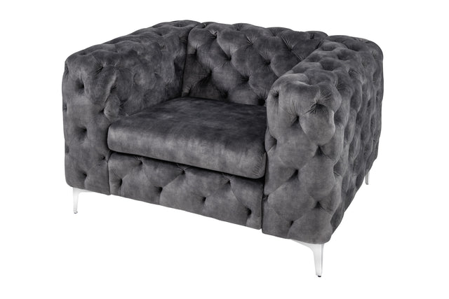 Armchair MODERN BAROCK Chesterfield look 120cm velvet grey