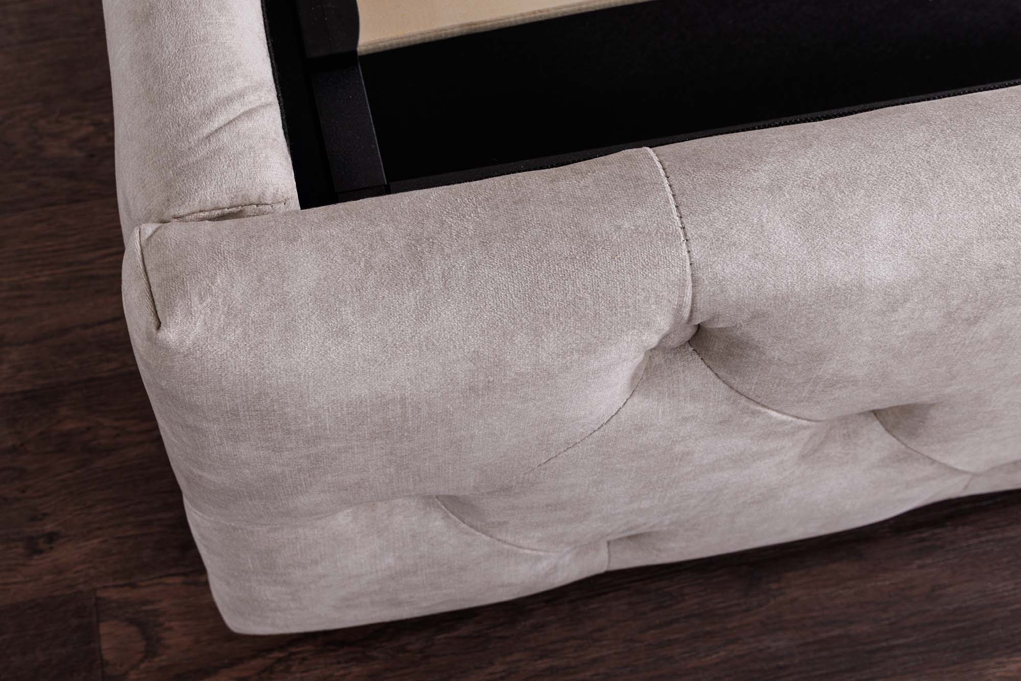 The PARIS bed in champagne beige velvet blends classic chesterfield charm with clever storage for a look that’s both elegant and functional. With its plush upholstery and sturdy build, it’s your perfect retreat for dreamy nights and stylish mornings.
