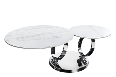 Coffee table DANCING RINGS 80-135cm rotatable ceramic top white marble look