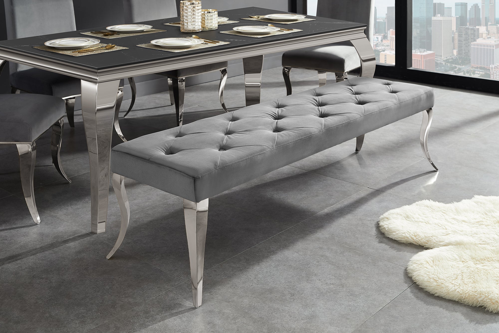 Bench MODERN BAROCK 170cm stainless steel legs silver velvet grey