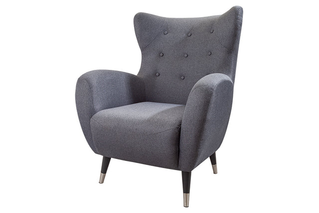 Wing chair DON anthracite w/ silver caps flat woven fabric