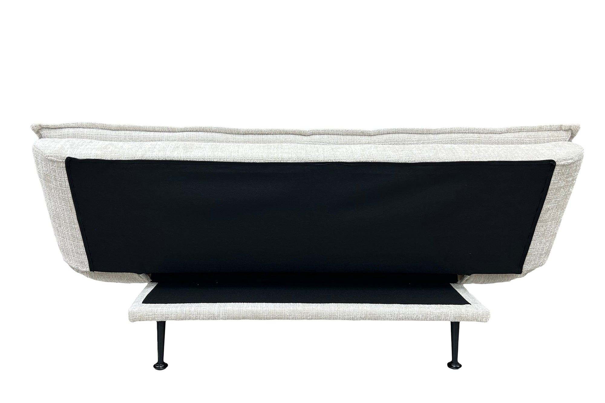 Bring laid-back luxury to your space with the JAZZ sofa bed in champagne beige chenille — a perfect harmony of comfort and modern design. With its soft upholstery, sleek black legs, and easy fold-out function, JAZZ is made for stylish lounging and spontaneous sleepovers alike.