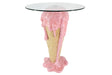 Bring playful charm and modern functionality to your space with the ICE CREAM bistro bar table, featuring a pink and beige ice-cream-inspired design. Handcrafted from varnished polyresin and topped with sleek tempered glass, this statement piece blends quirky style with practicality for any casual gathering or lounge setup.