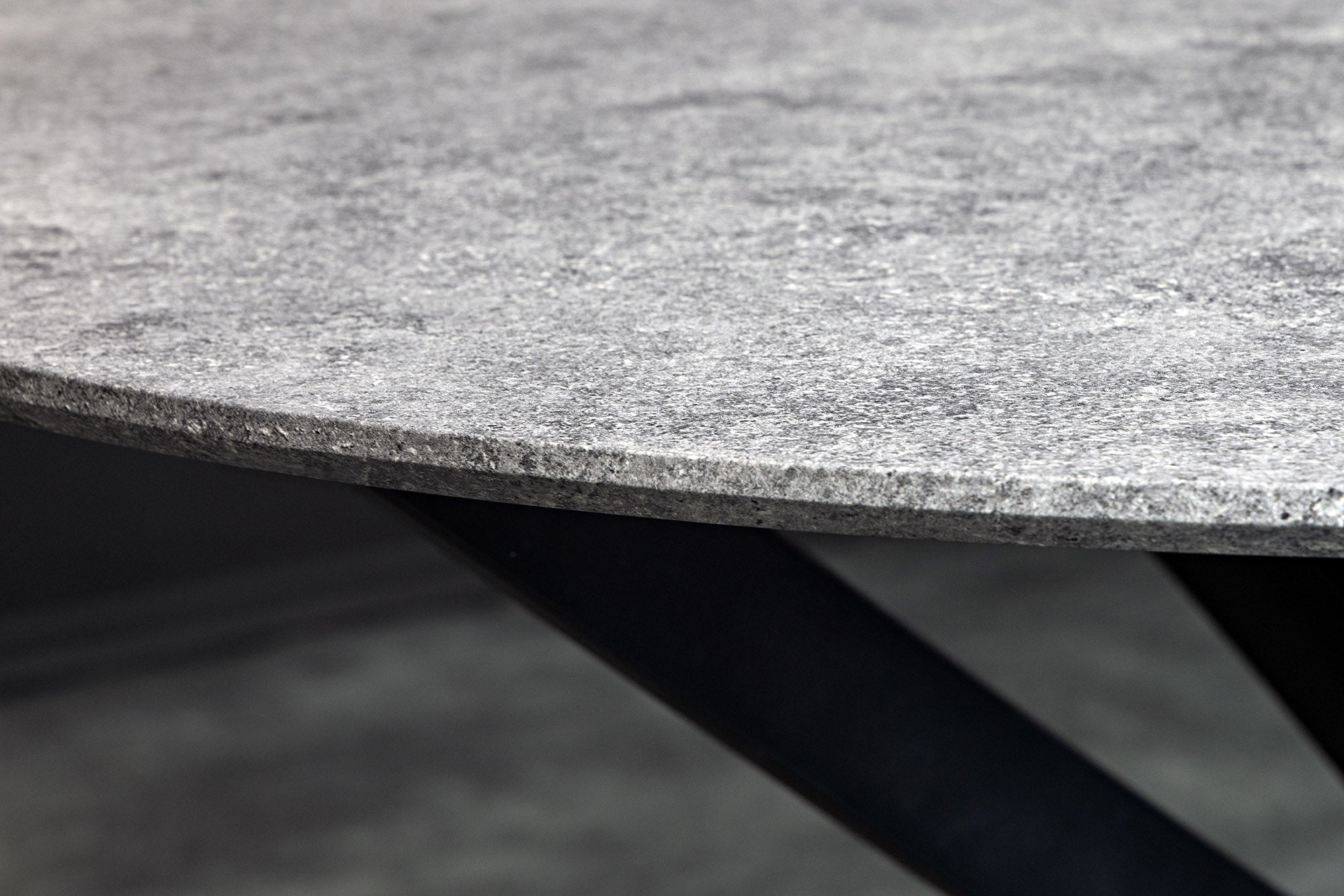 Dining table HELIX 120cm round grey stone look w/ black metal frame