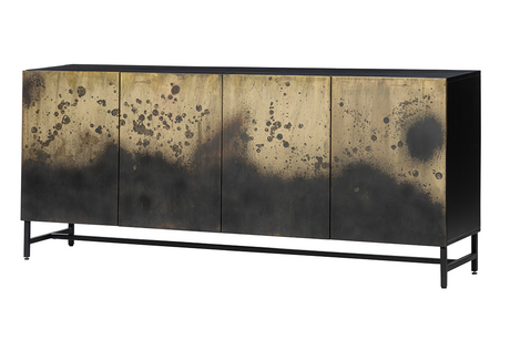 Sideboard OXID 180cm Metall schwarz gold massives Mangoholz