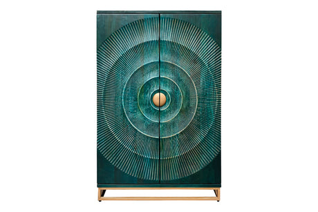 Barschrank GOLDEN SUNSET 140cm 3D Mangoholz türkis handgefertigt