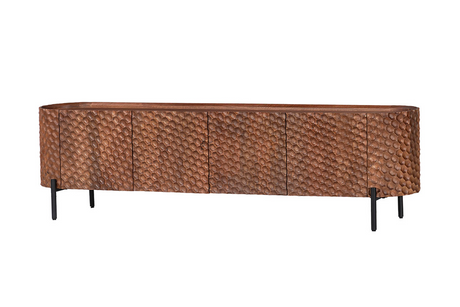 TV-Board ADLON 200cm 3D Mango Massivholz mit schwarzem Gestell
