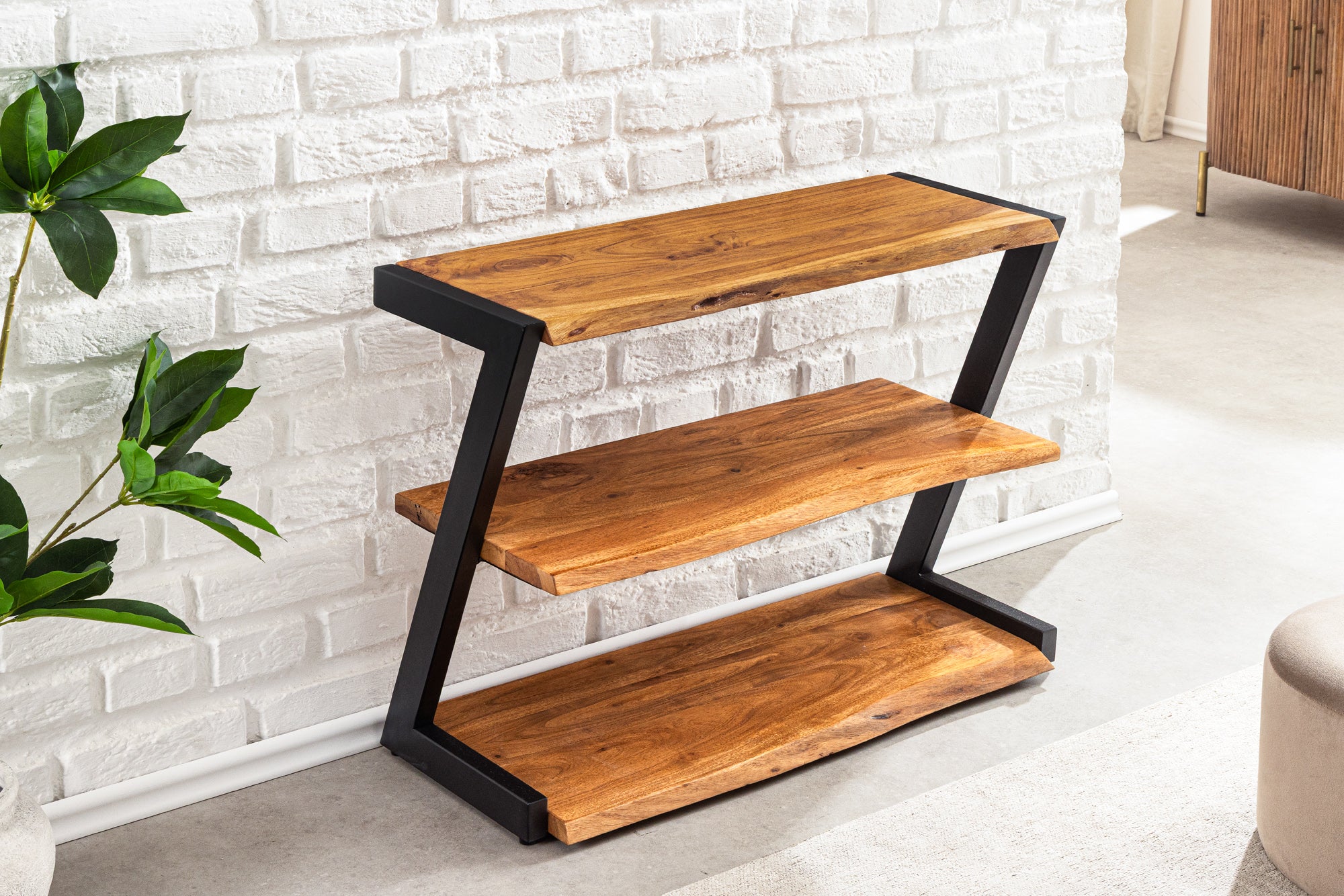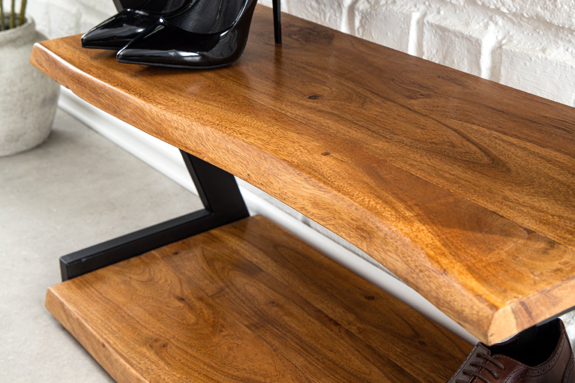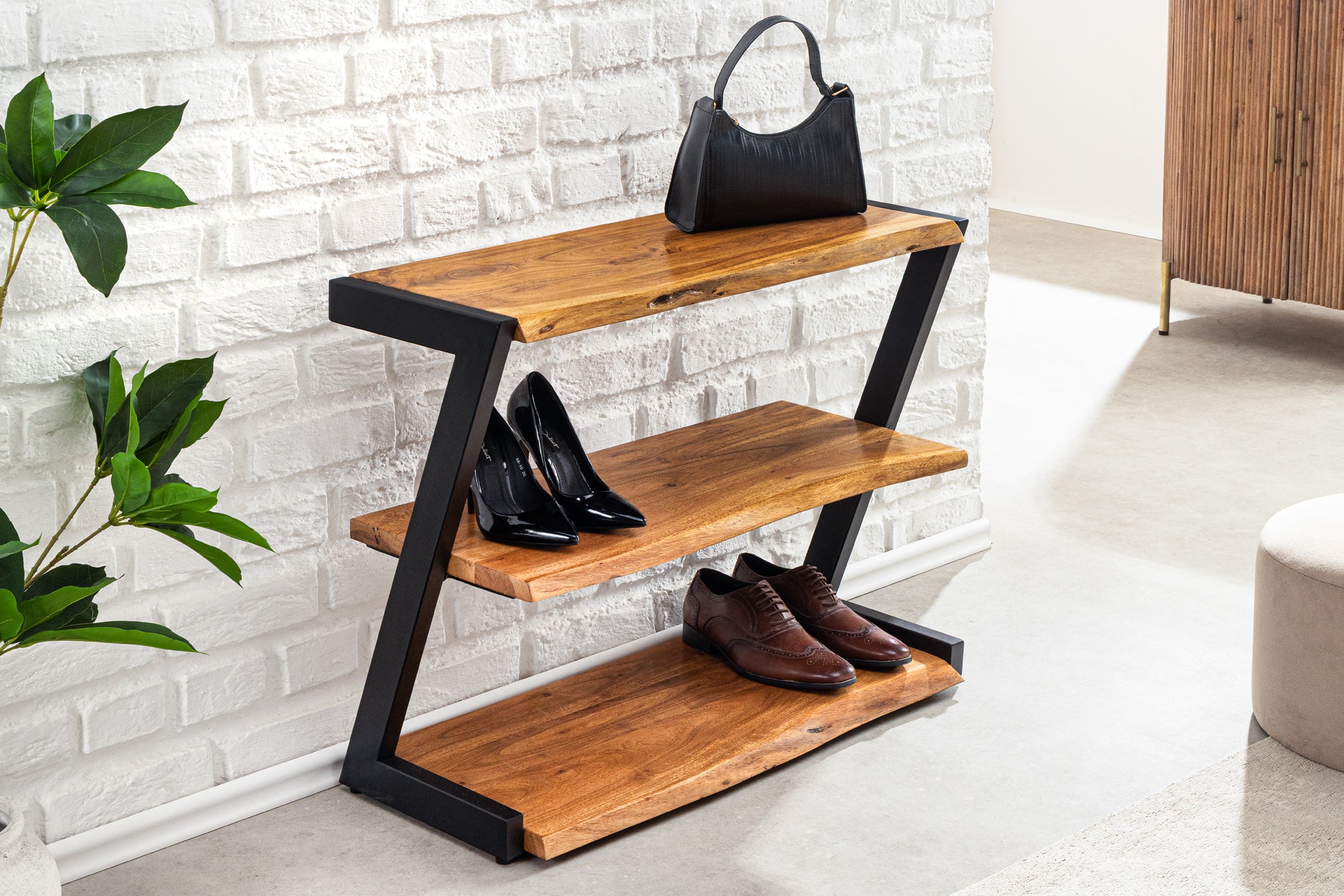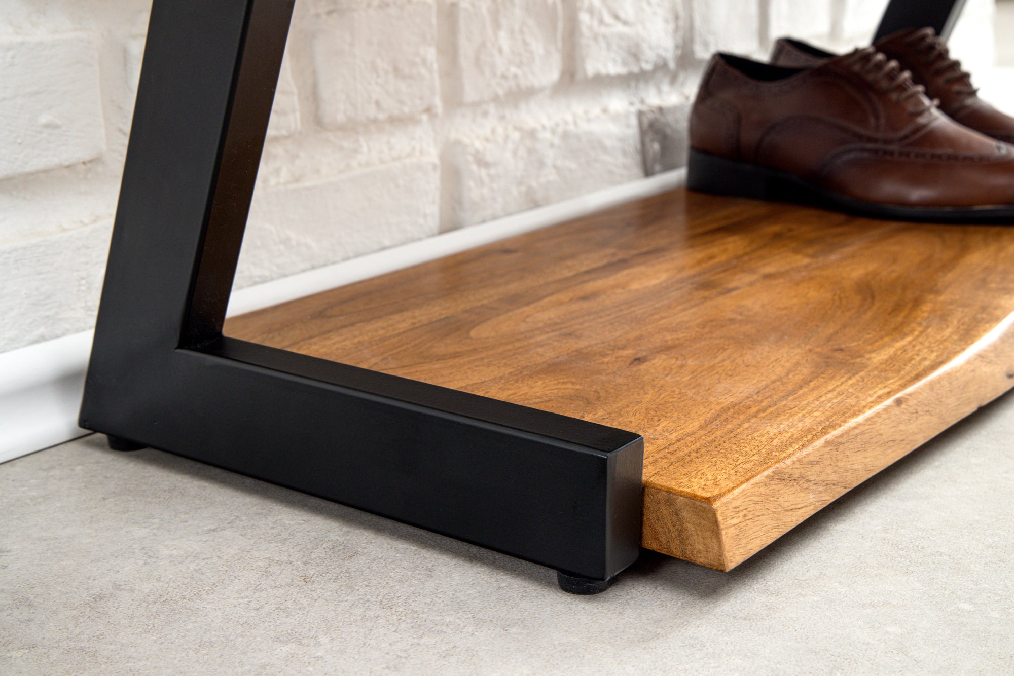 Verleihen Sie Ihrem Flur das gewisse Etwas mit dem stylischen und robusten MAMMUT Schuhregal – wo elegantes Design auf clevere Aufbewahrung trifft. Hergestellt aus edlem Akazienholz und schwarzem Metall, hält es Ihre Schuhe in Ordnung, ohne dabei auf Stil zu verzichten.