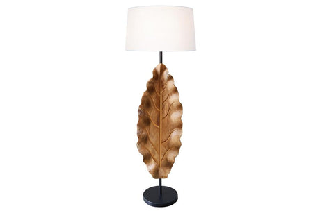 Stehlampe LEAF 130cm /w Stoffschirm Teakholz weiß natur