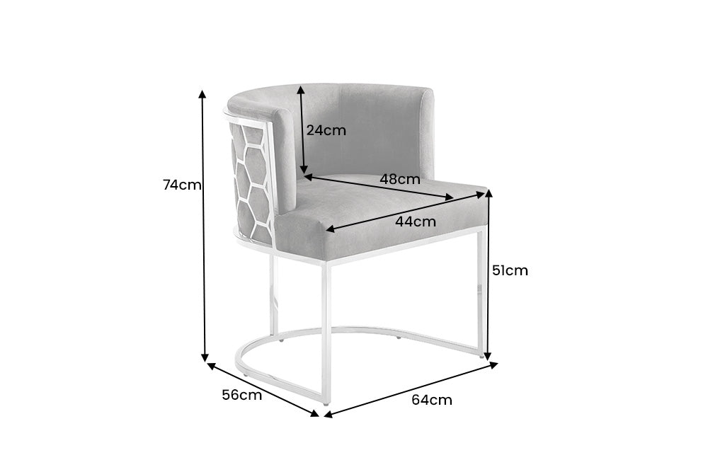 Verleihen Sie Ihrem Raum mit dem Stuhl ELEGANCE eine besondere Note – weicher grauer Samt trifft auf elegante silberne Akzente. ELEGANCE vereint behaglichen Komfort mit moderner Raffinesse und macht jeden Sitzplatz zu einem stilvollen Statement.