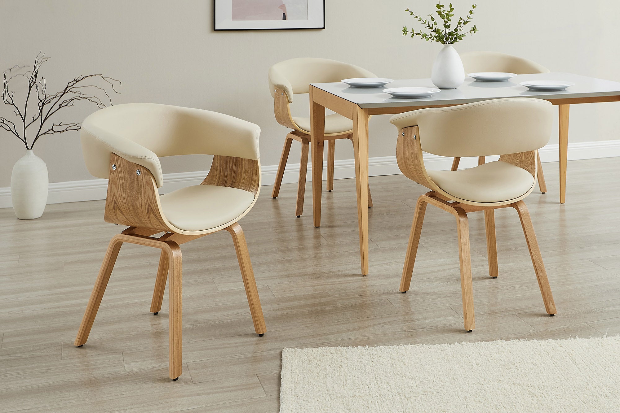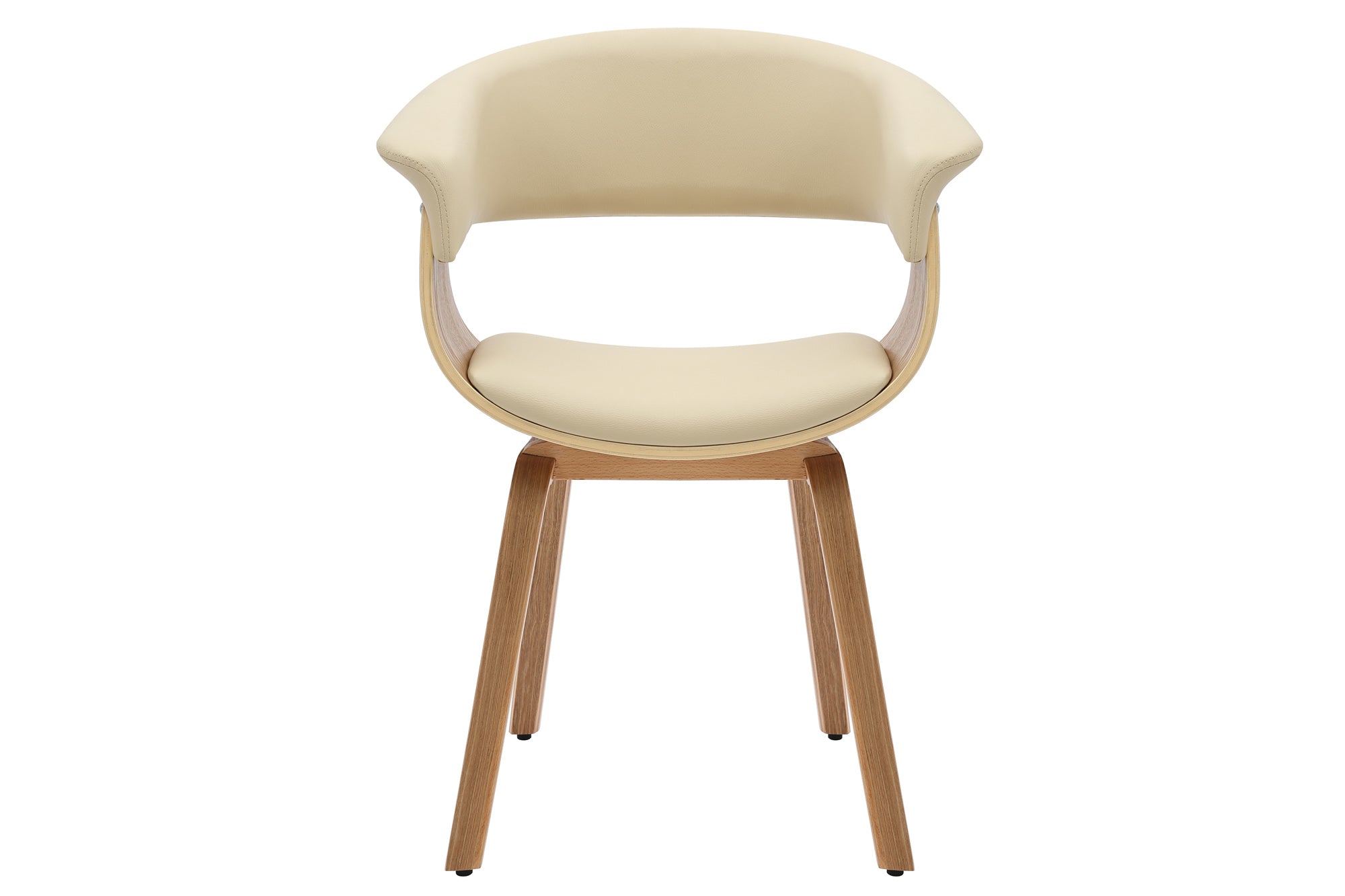 Stuhl ORGANIC mit Armlehnen Kunstleder cremebeige und Gestell in Eichenholzoptik