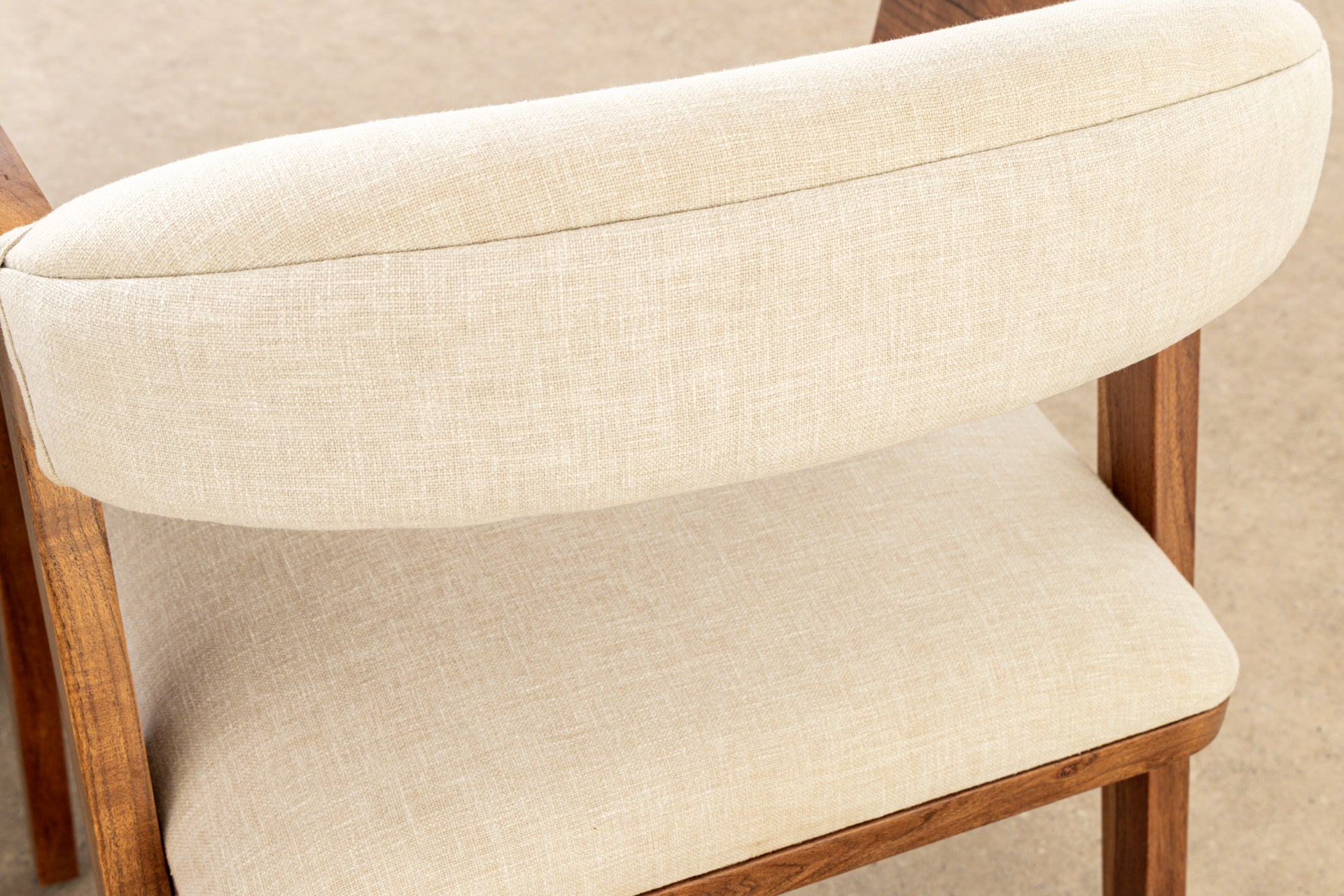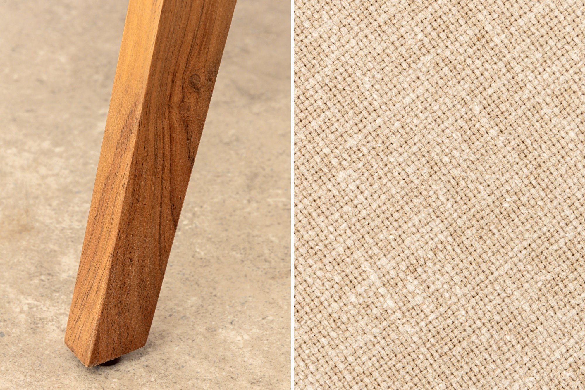 Stuhl MAMMUT, Akazienholz, natur honigfarben, mit flachem, hellgrauem Stoffbezug