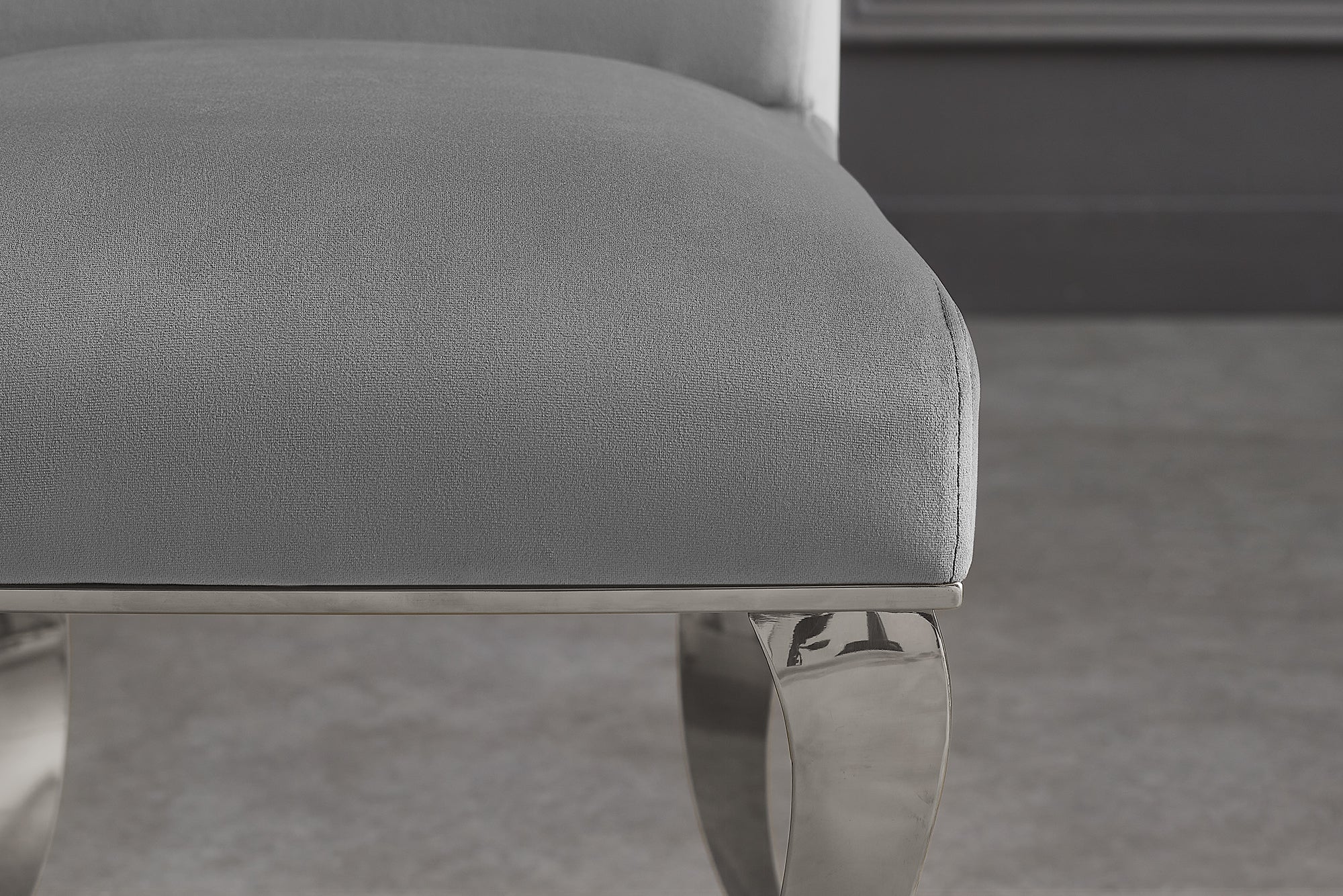 Stuhl MODERN BAROCK, samtgrau mit silberfarbenen Edelstahlbeinen