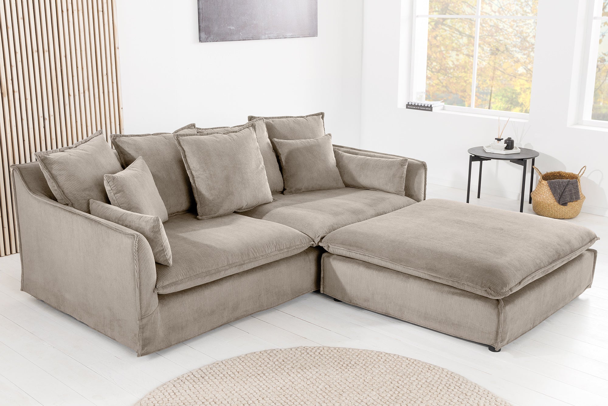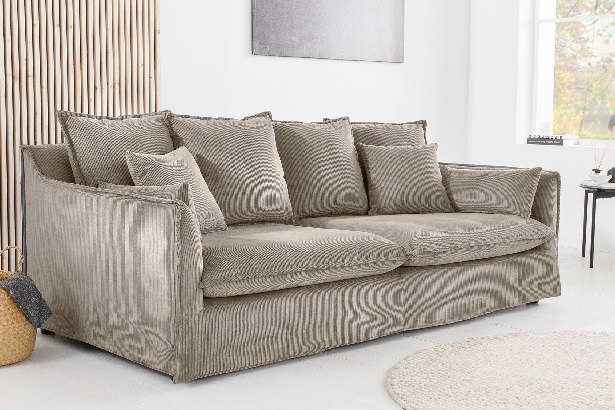 Sofa HEAVEN 200cm 3-Sitzer Federkern abnehmbarer Bezug Cord Greige